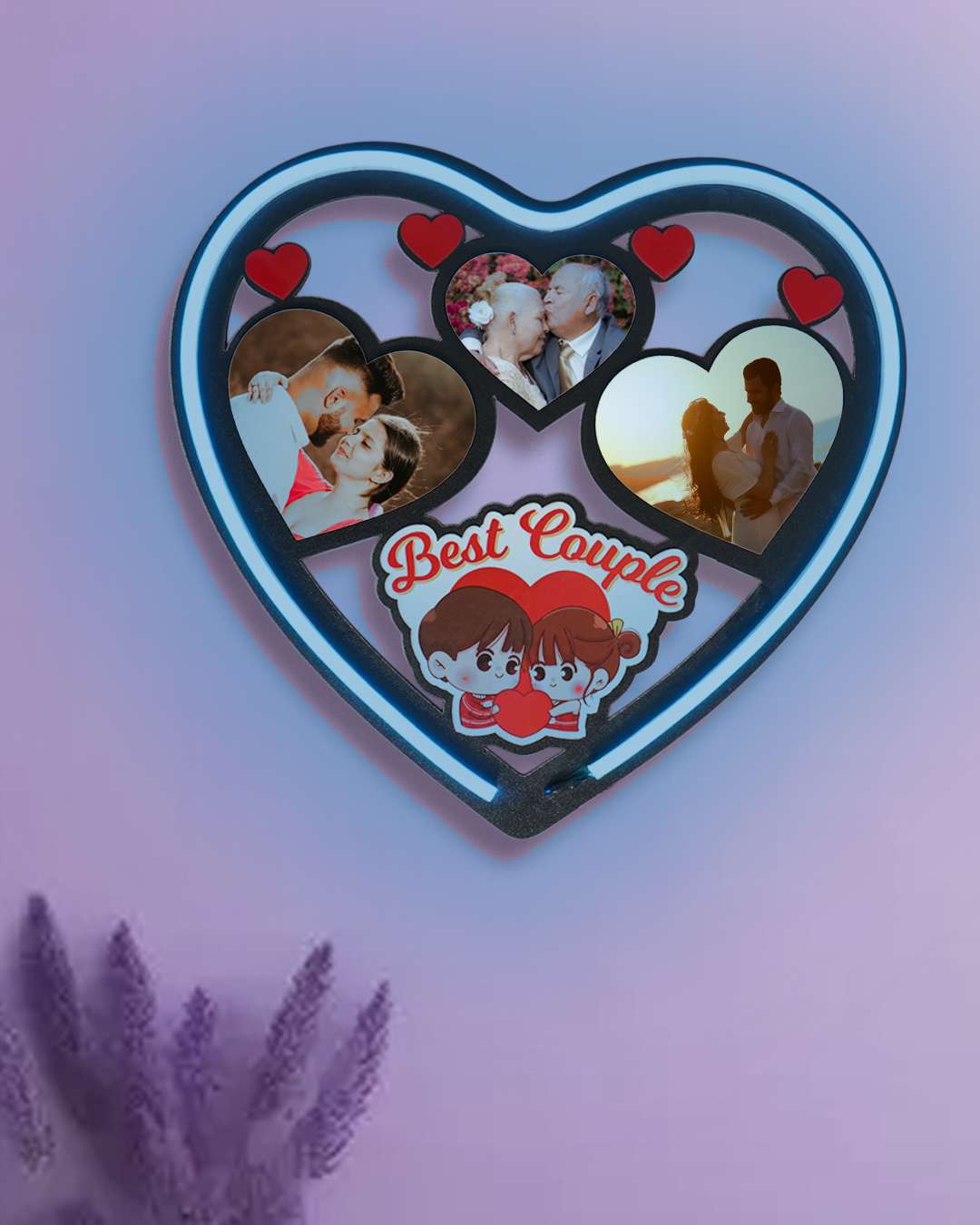 Best Collage Couple LED Photo Frame Heart Shape | White