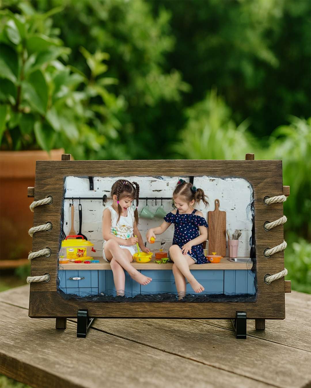 Crafted from Rock Stone: This piece is made from durable rock stone, offering a unique and enduring aesthetic. Each package includes one frame, perfect for elegantly displaying your chosen item."