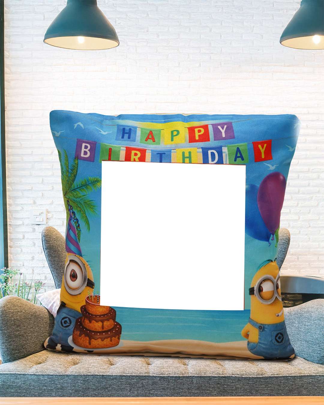 Happy Birthday Square Shaped Pillow – Personalized with your photo or text | Multi